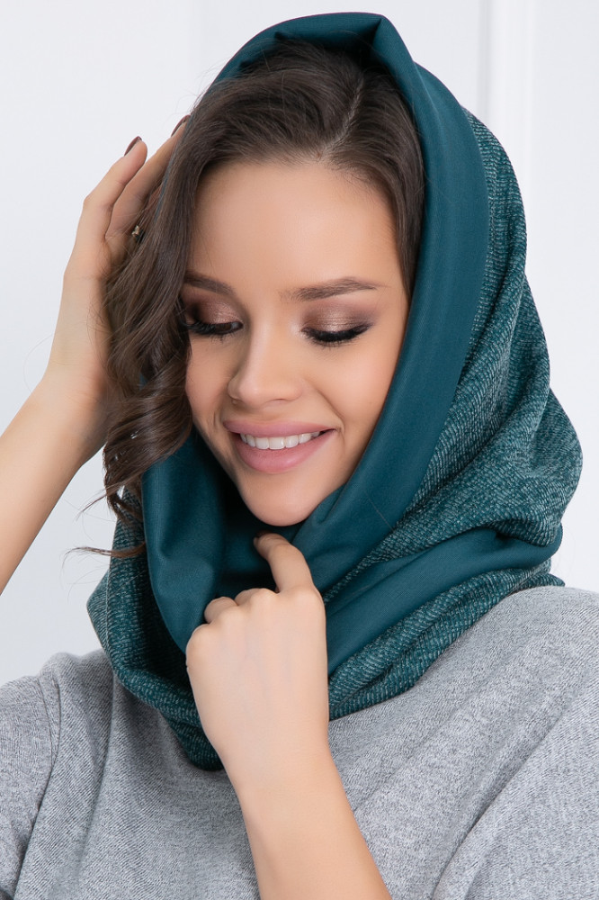 Материал двусторонний, цвет приятный, ткань мягкая, снуд понравился.