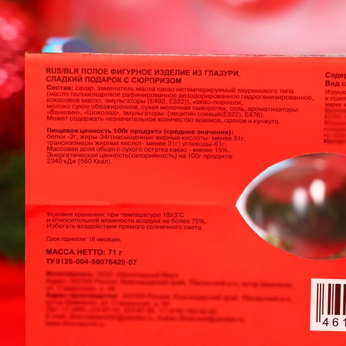 💳 Оплатить за товар можно при получении 🇰🇿 Есть бесплатная доставка по Казахстану от 1 дня 🎁 Копите бонусы с каждой покупки Шоколад в яркой и красочной упаковке, в виде старой елочной игрушки — это необычный, оригинальный сладкий подарок, который дарит неповторимые эмоции! Вам больше не нужно ломать голову над идеей подарка, мы все придумали за Вас. Это отличная идея презента на Новый год любимой, жене, девушке, подруге, коллеге, маме, бабушке, сестре, дочери или внучке, а также любимому, мужу, парню, другу, папе, дедушке, брату, сыну или внуку. |