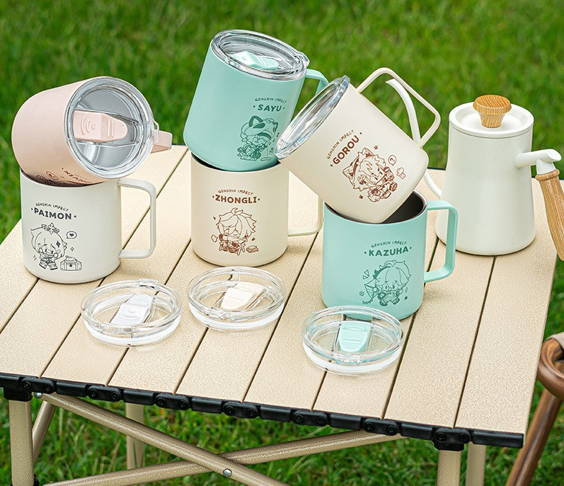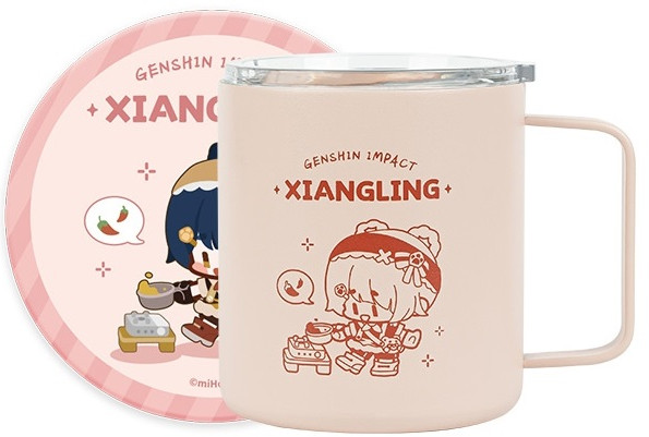 Кружка для пикника, с крышкой и подставкой Go Camping! series «Xiangling» по мотивам компьютерной игры «Genshin Impact». Материал колбы - нержавеющая сталь, корпус изготовлен из пластика.
