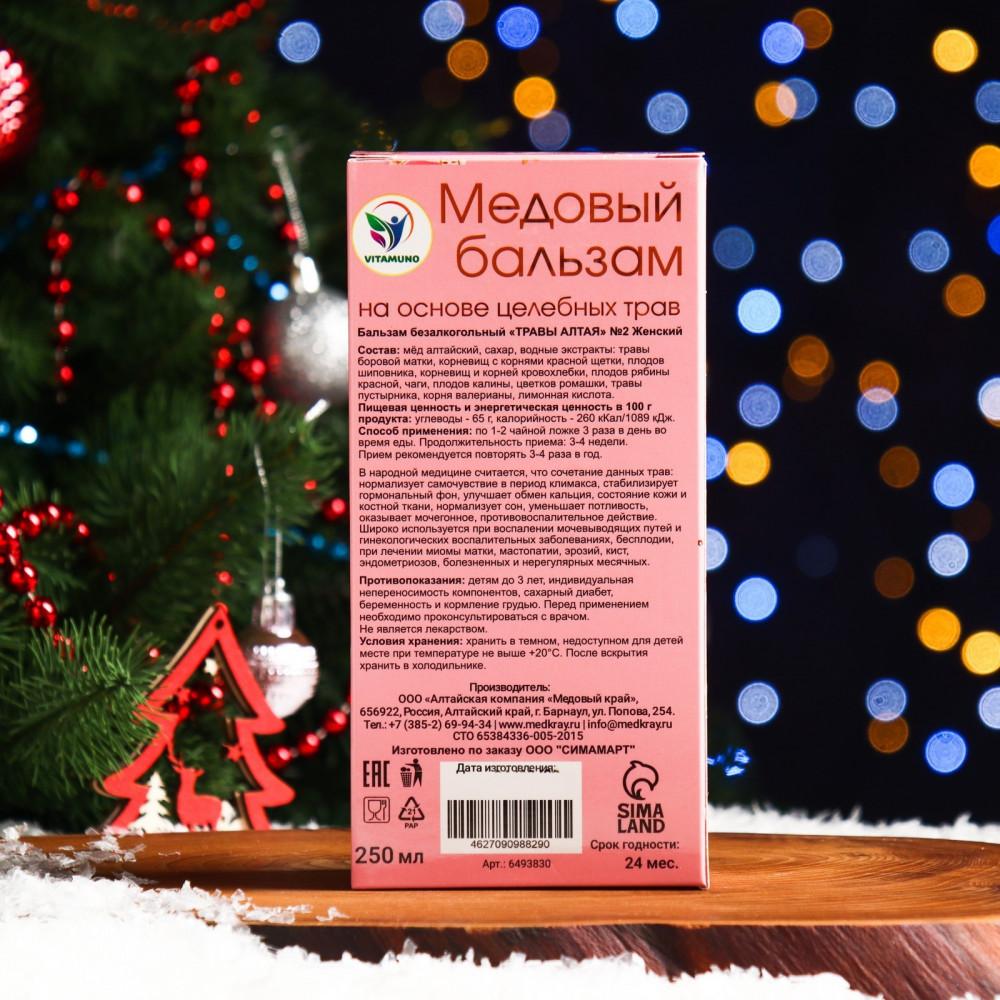 Vitamuno Бальзам медовый алтайский «Женский»В данный момент этот товар отсутствует в продаже. Возможно, у нас найдется аналогичный или похожий товар здесь. Серия: Новый год Медовые бальзамы — натуральный продукт, изготовленный для людей, которые бережно относятся к здоровью. Для производства бальзамов на меду используется натуральный алтайский мед, лекарственные травы, плоды, коренья, собранные в экологически чистых районах Горного Алтая. Благодаря строгому соблюдению технологии производства и использованию только натуральных компонентов получается продукт высочайшего качества. |