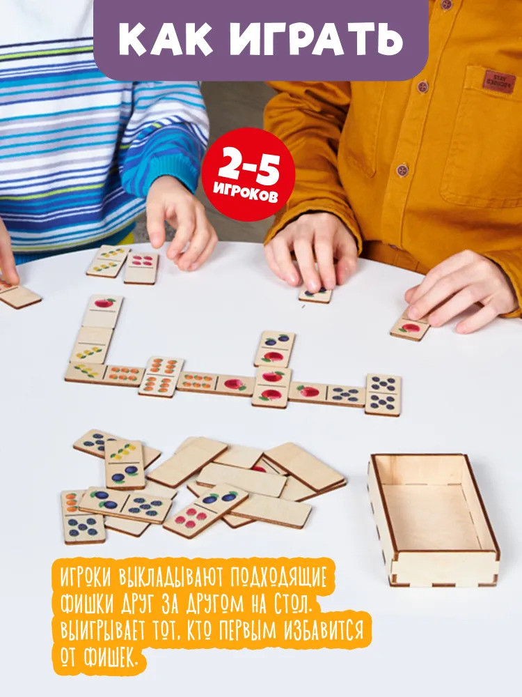 💳 Оплатить за товар можно при получении 🇰🇿 Есть бесплатная доставка по Казахстану 🎁 Копите бонусы с каждой покупки Детское деревянное домино «Фрукты и ягоды» (28 фишек) — это интересная и увлекательная игра для детей и взрослых. Фишки домино выполнены из экологически чистой березовой фанеры и хранятся в коробочке из древесного материала. |