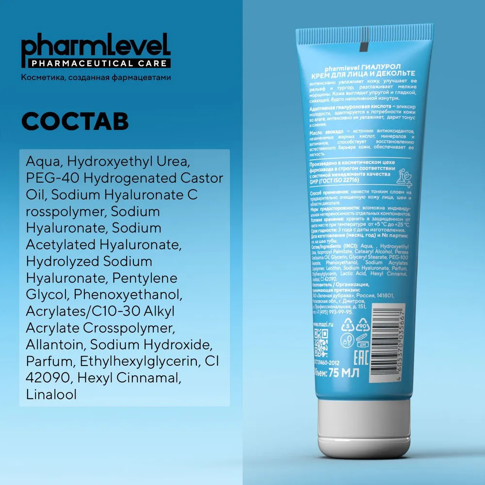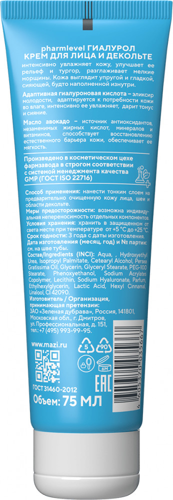 Pharmlevel Крем для лица и декольте с гиалуроновой кислотой