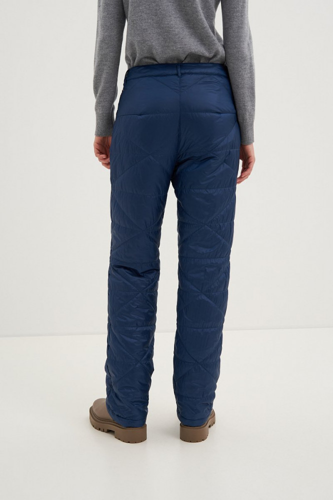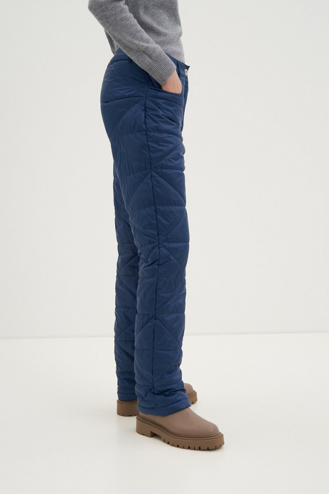Зимние женские брюки на легком утеплителе. Основной материал — плотная плащевая ткань с легкими водоотталкивающими свойствами. Подкладка выполнена из мягкого износостойкого полиэстера. В качестве наполнителя используется синтепон, который хорошо сохраняет тепло, не деформируется и не промокает. Модель прямого кроя с карманами и мягким поясом со шлевками. Застежка на молнию и пуговицу. Допустима бережная стирка в машине.