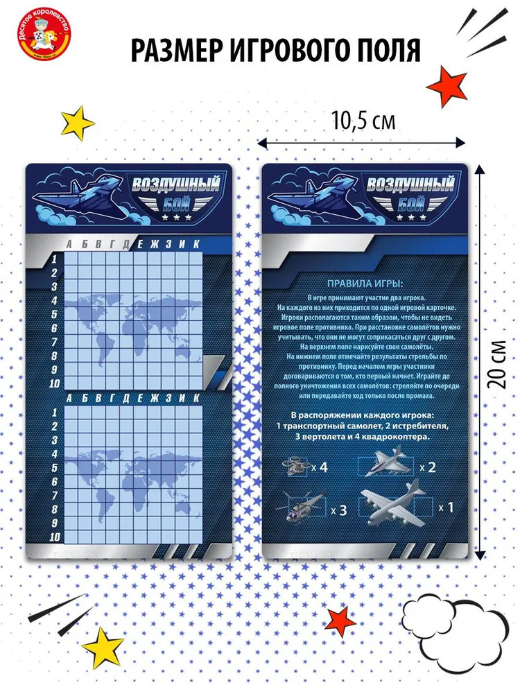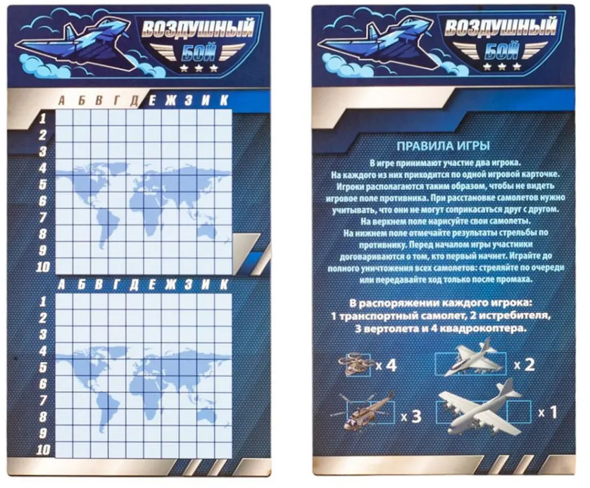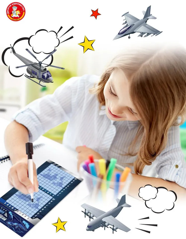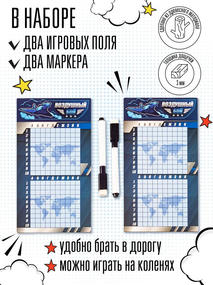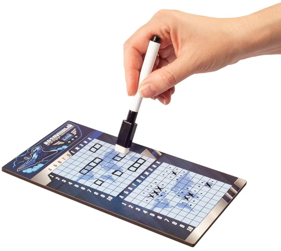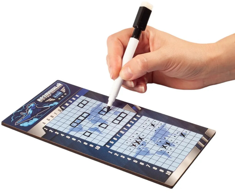 💳 Оплатить за товар можно при получении 🇰🇿 Есть бесплатная доставка по Казахстану 🎁 Копите бонусы с каждой покупки Данная настольная игра «Воздушный бой» с маркерами — это дорожный вариант стратегических игр, представленных в интернет-магазине. Специальное покрытие игрового поля позволяет многократно использовать его, т.к. маркер легко стирается. Стерка находится на колпачке маркера. |