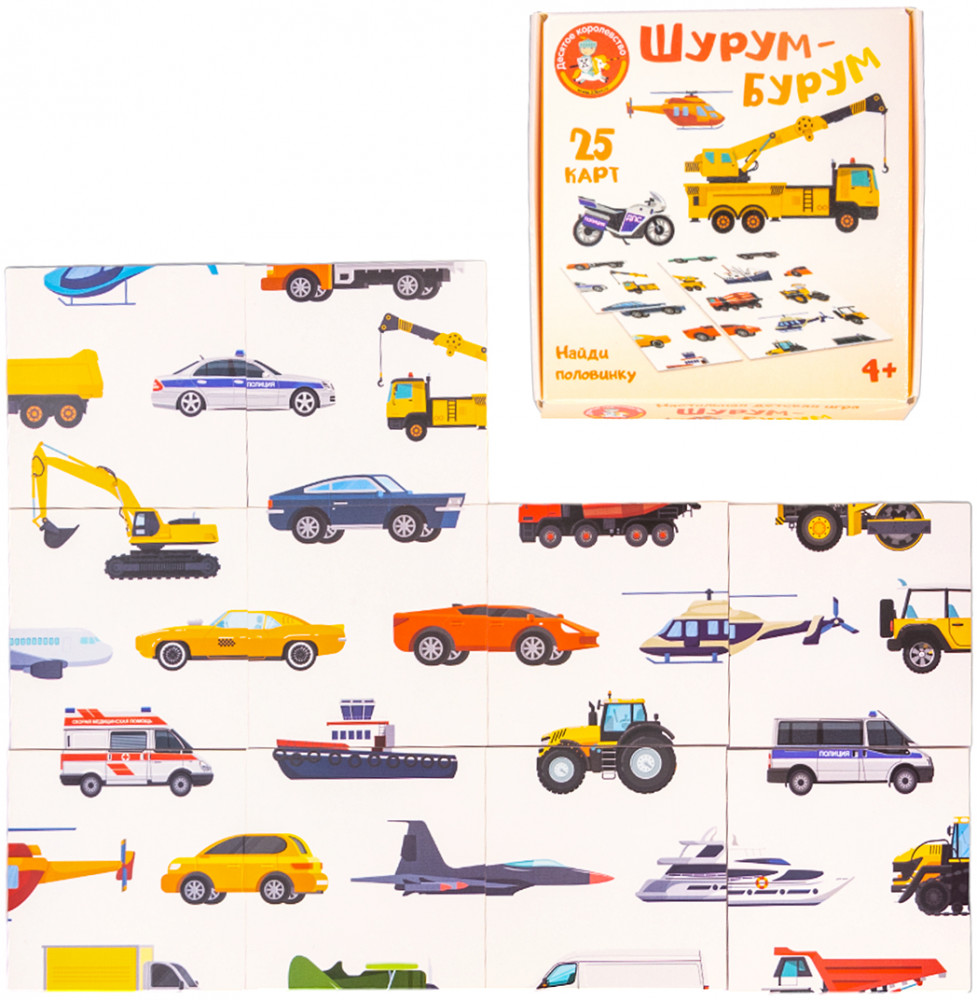 Десятое королевство Игра настольная «Шурум-Бурум. Найди половинку»В данный момент этот товар отсутствует в продаже. Возможно, у нас найдется аналогичный или похожий товар здесь. Настольная игра для детей «Шурум-Бурум. Найди половинку» (транспорт) — это занимательная игра для мальчиков. Она поможет с пользой провести время, собирая из карточек яркие изображения автомобилей, самолетов, кораблей и строительной техники. Удобная коробочка не занимает много места и позволяет брать игру в дорогу или в гости. |