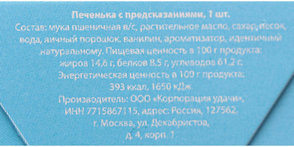 💳 Оплатить за товар можно при получении 🇰🇿 Есть бесплатная доставка по Казахстану от 1 дня 🎁 Копите бонусы с каждой покупки Это печенье представляет собой небольшое хрустящее лакомство, в котором запечен листочек с предсказанием. Печенье может стать не только вкусным десертом, но и отличным вариантом подарка близкому человеку. Он обязательно оценит неординарный подход, а оригинальная надпись-сюрприз оставит после себя массу положительных эмоций! |