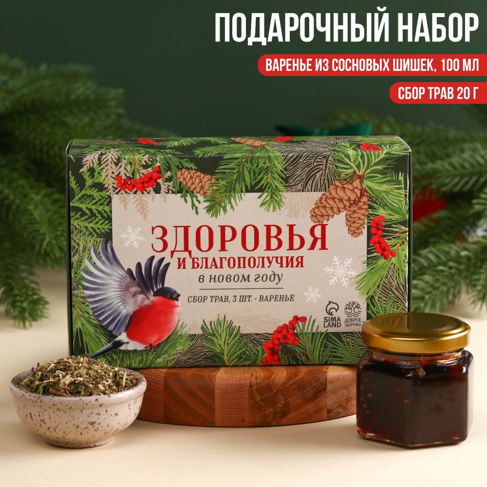 Отзывы «Набор подарочный«Здоровья и благополучия»: сбор трав 3 шт. х 20 г варенье из сосновых шишек 100 мл.»