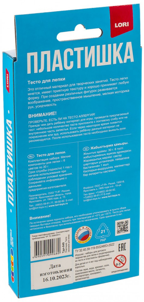 💳 Оплатить за товар можно при получении 🇰🇿 Есть бесплатная доставка по Казахстану от 1 дня 🎁 Копите бонусы с каждой покупки Серия: Пластишка Тесто для лепки фирмы «Лори» изготовлено из безопасных материалов и не содержит вредных ароматизаторов и запахов, из-за которых малышу может захотеться его попробовать. Тесто не липнет к рукам, не пачкает одежду, но при этом легко лепится и отщипывается. В отличие от самодельного теста, масса для лепки «Пластишка» долго хранится, сохраняя свои свойства. Тесто имеет яркую цветовую гамму и является замечательной заменой пластилину. |