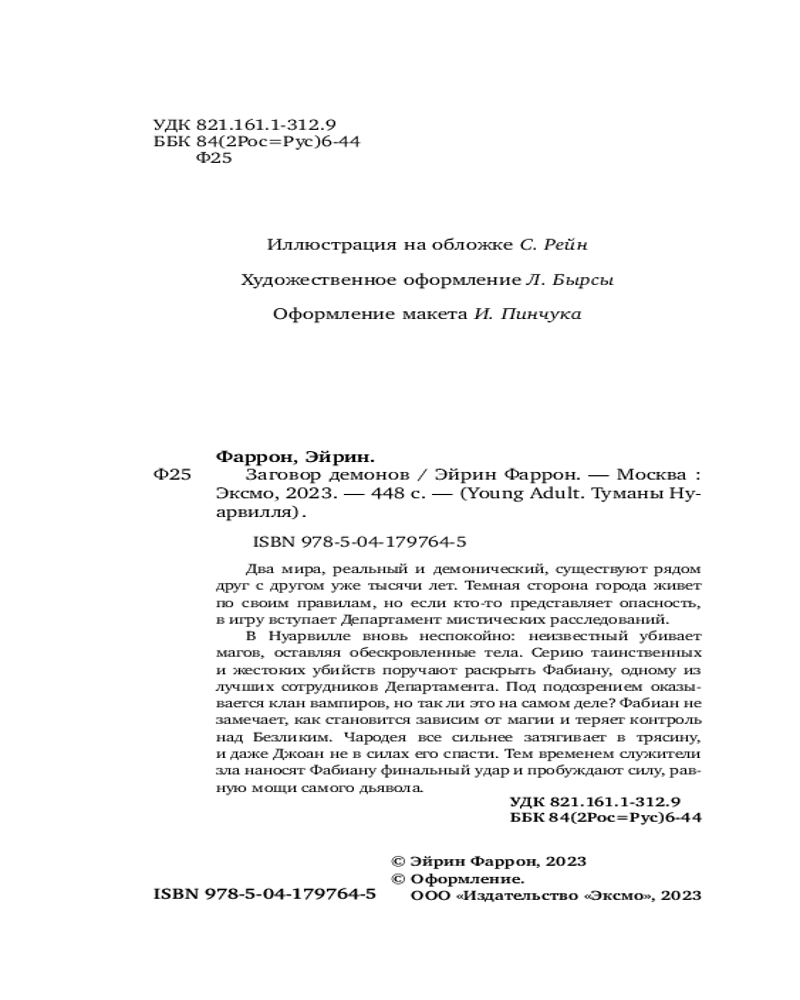 💳 Оплатить за товар можно при получении 🇰🇿 Есть бесплатная доставка по Казахстану от 1 дня 🎁 Копите бонусы с каждой покупки Серия: Young Adult. Туманы Нуарвилля «Заговор демонов» — продолжение городского фэнтези «Клан теней» Эйрин Фаррон. Новое расследование, магия, демоны, вампиры, ритуалы. |