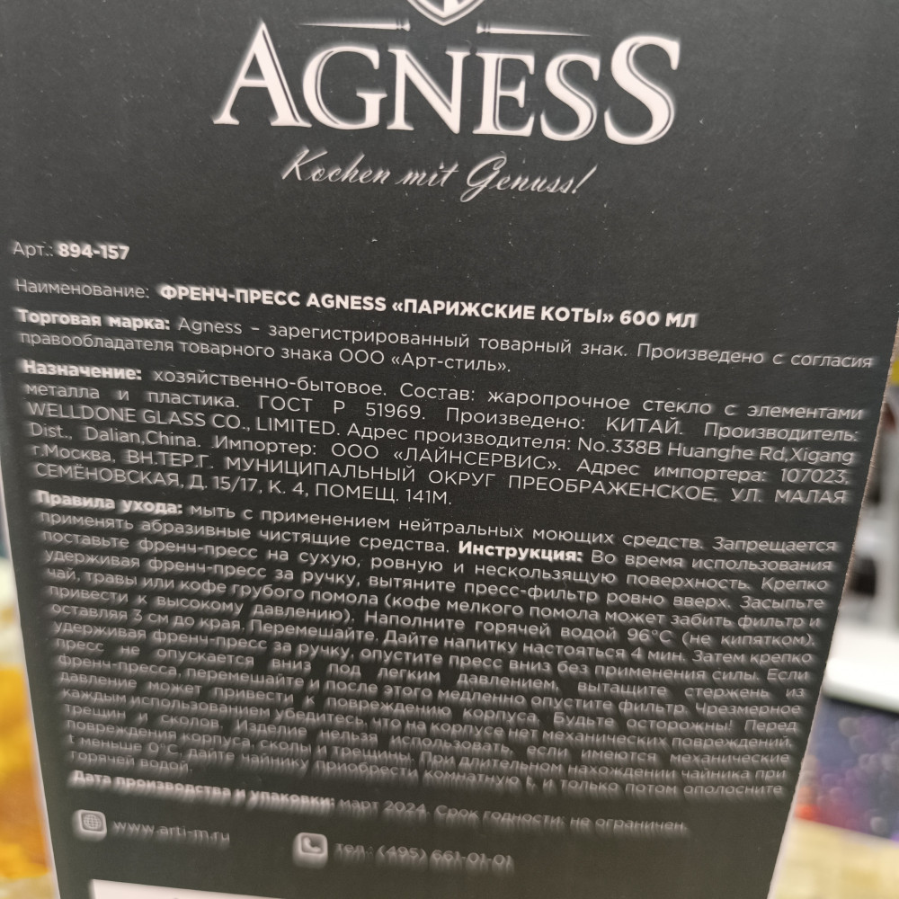 Agness Френч-пресс «Парижские коты»-45% +157 стильный дизайн качественные материалы функциональность двухсторонний рисунок