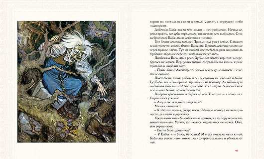 Когда заказывала книгу переживала за содержание, так как в описании его не было. А у нас уже есть две книги с русскими сказками. Но осталась довольна, повторов оказалось мало. А уж оформление и иллюстрации выше всяких похвал. Вот содержание книги: Крошечка-Хаврошечка, По щучьему веленью, Царевна-лягушка, Баба-яга, Морозко. Деревянный орёл. Сказка о молодильных яблоках. Семь Симеонов. Никита Кожемяка. Иван-царевич и серый волк. Матюша Пепельной. Летучий корабль. Поди туда-не знаю куда. Бой на Калиновом мосту. Медное, золотое и серебряное царство. Сказка про Василису Премудрую. Книга подходит для более старших деток. Потому что иллюстрации не на каждой странице.