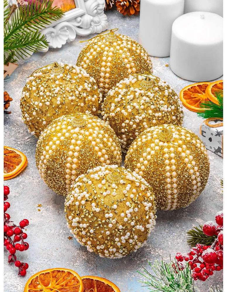 Elan Gallery Набор шаров новогодних «Жемчужины на золотом»В данный момент этот товар отсутствует в продаже. Возможно, у нас найдется аналогичный или похожий товар здесь. Набор из 6-ти новогодних шаров украсит елку и привнесет праздничную атмосферу! Шары подойдут для использования в роли елочного украшения, интерьерного декора на стену, создания декоративных подвесных или настольных композиций. Еловые шарики мало весят: вы сможете подвесить их даже на самые высокие и тонкие веточки. Диаметр каждого шара 9,5 см. Имеется петля для подвешивания. Большие новогодние игрушки смогут стать настоящим украшением вашего дома и помогут ярко отпраздновать Новый Год или Рождество! |