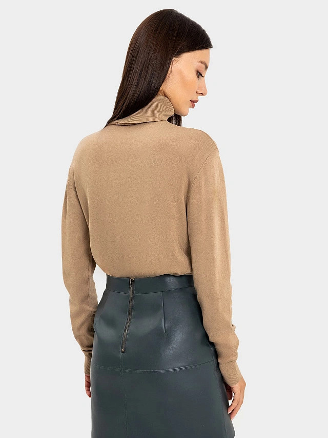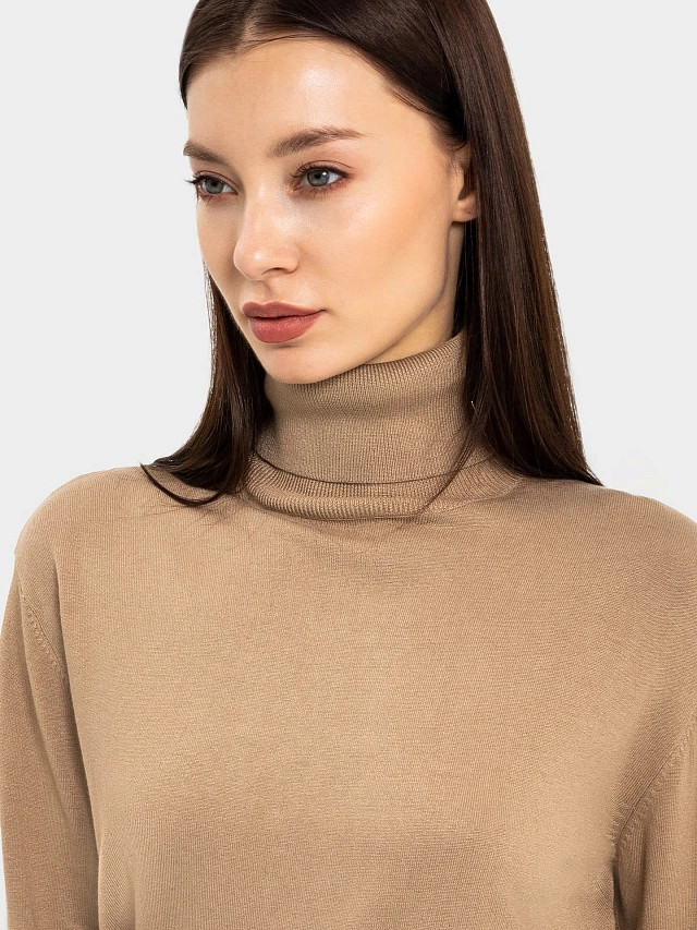 водолазка из вискозы, со всеми вытекающими. не жаркая, с характерным отливом. насыщенно черная. посадка свободная. идет в размер.