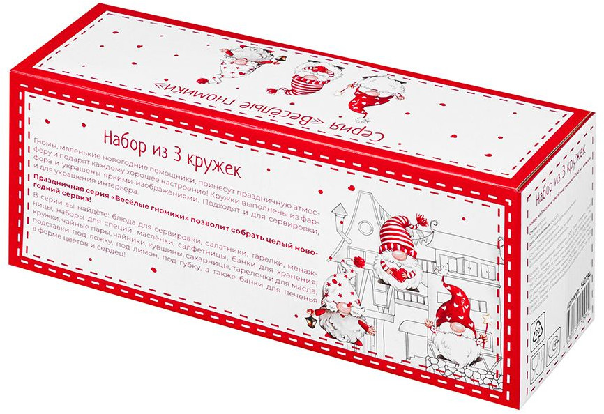 Elan Gallery Набор кружек «Весёлые гномики»В данный момент этот товар отсутствует в продаже. Возможно, у нас найдется аналогичный или похожий товар здесь. Серия: Веселые гномики Набор серии «Веселые гномики» состоит из трёх кружек. Набор кружек поможет провести множество приятных завтраков с капучино или латте, а также уютных чайных вечеров. Кружки выполнены из высококачественного фарфора. Фарфоровые чашки отличаются повышенной плотностью, они не впитывают цвет кофе, чая, глинтвейна, других горячих напитков и не деформируются от влаги. Красивые кружки смогут стать настоящим украшением кухни у вас дома или приятным подарком для ваших родных и близких! |