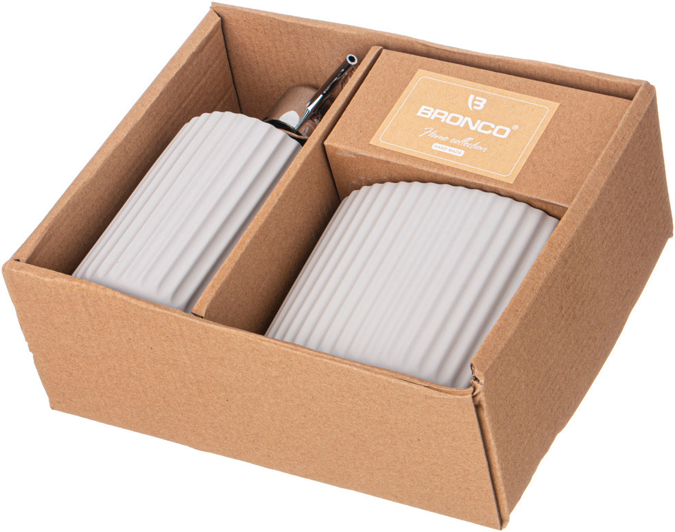 Bronco Набор для ванной комнатыВ данный момент этот товар отсутствует в продаже. Возможно, у нас найдется аналогичный или похожий товар здесь. Секрет удачного оформления любого интерьера — яркие аксессуары! Набор предметов для ванной не только внесёт изюминку в интерьер, но и придаст ему стильность, уют и ощущение завершенности. А так же значительно облегчит хранение некоторых принадлежностей. Набор аксессуаров для ванной комнаты состоит из дозатора для жидкого мыла и стакана для зубной пасты и зубных щеток. Все предметы изготовлены из керамики — которая совершенно безопасна. |