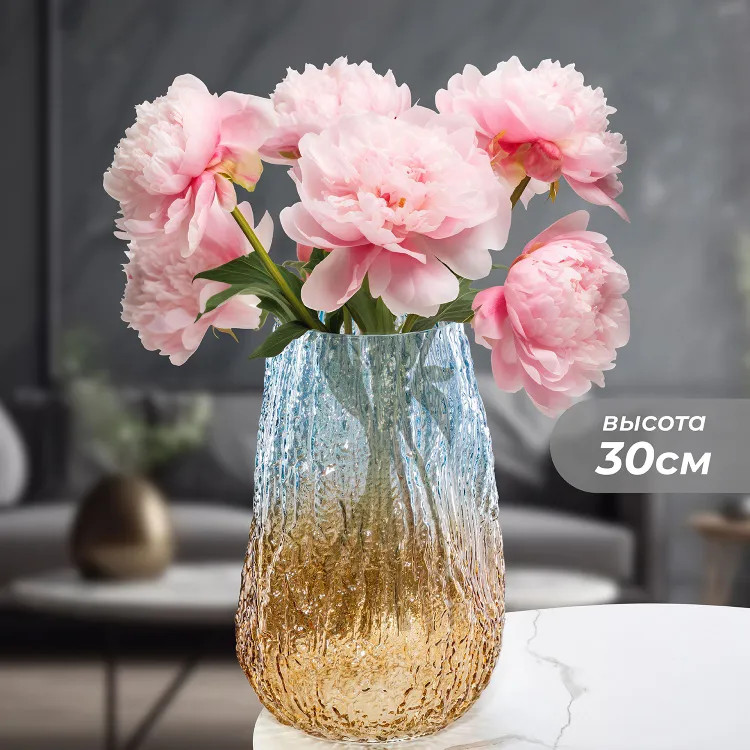 Отлично вписалась в интерьер! Очень интересная ваза, вместительная по объему, высокая, устойчивая- большой букет влезает без проблем.