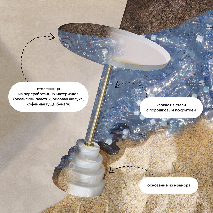 Столик кофейный «Sustainable Collection» — не просто предмет мебели, а олицетворение заботы об окружающей среде и стремления к функциональному дизайну.