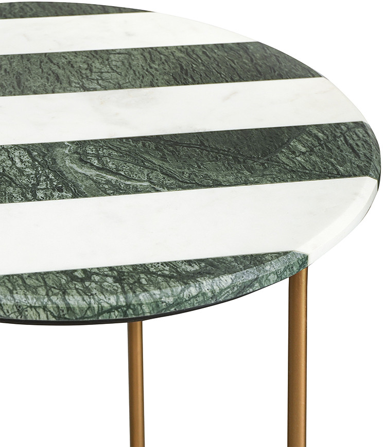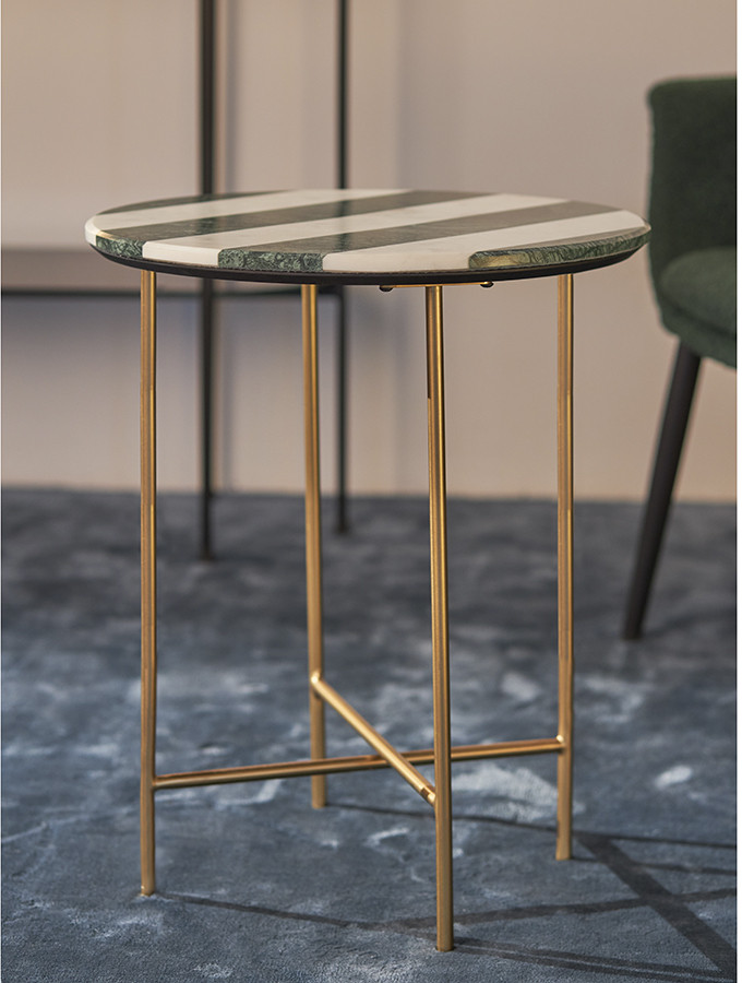• сочетание столешницы с полосатым узором и ножек с золотистым покрытием создает интересный визуальный эффект, который добавляет особый шарм в любое пространство.