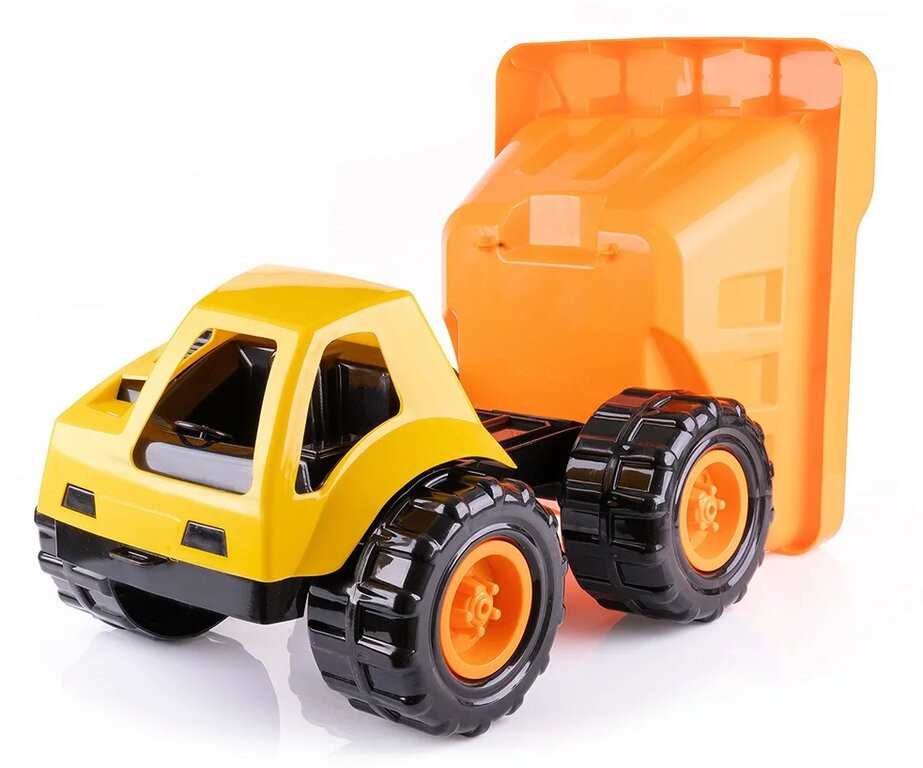 Машина-самосвал «Бугай на стройке» не оставит равнодушным ни одного ребёнка. Машина сделана из прочного пластика ярких цветов, имеет мощные колёса и откидывающийся кузов, как и полагается самосвалам. Все детали изготовлены из высококачественного пластика, устойчивого к погодным условиям. Все края игрушки имеют округлую форму, чтобы исключить случайное травмирование малыша при игре. |