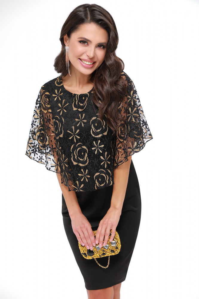 Платье нарядное, пелерина создаёт праздничный эффект и заодно скрывает небольшие неровности на спине