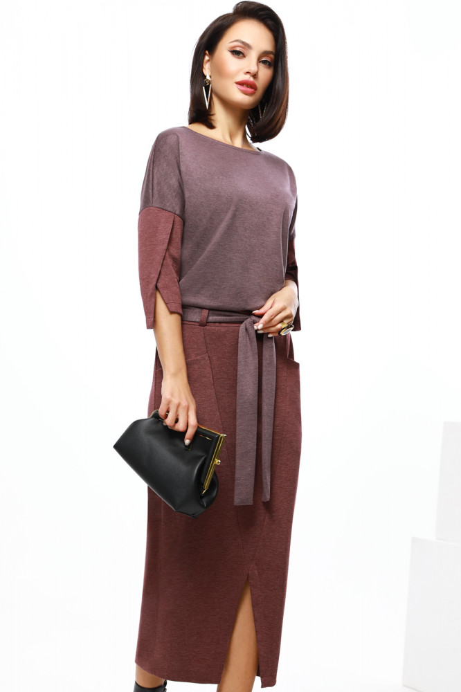 Хорошее платье, качественный трикотаж. Цвет благородный, графит. Маломерит, на 48 заказала 50 размер, при этом лиф обьемный, модель такая. Обратить внимание, платье на высокий рост, мне на 175 см на 2 ладони ниже колена. Платье с поясом, пояс перекручиваетс