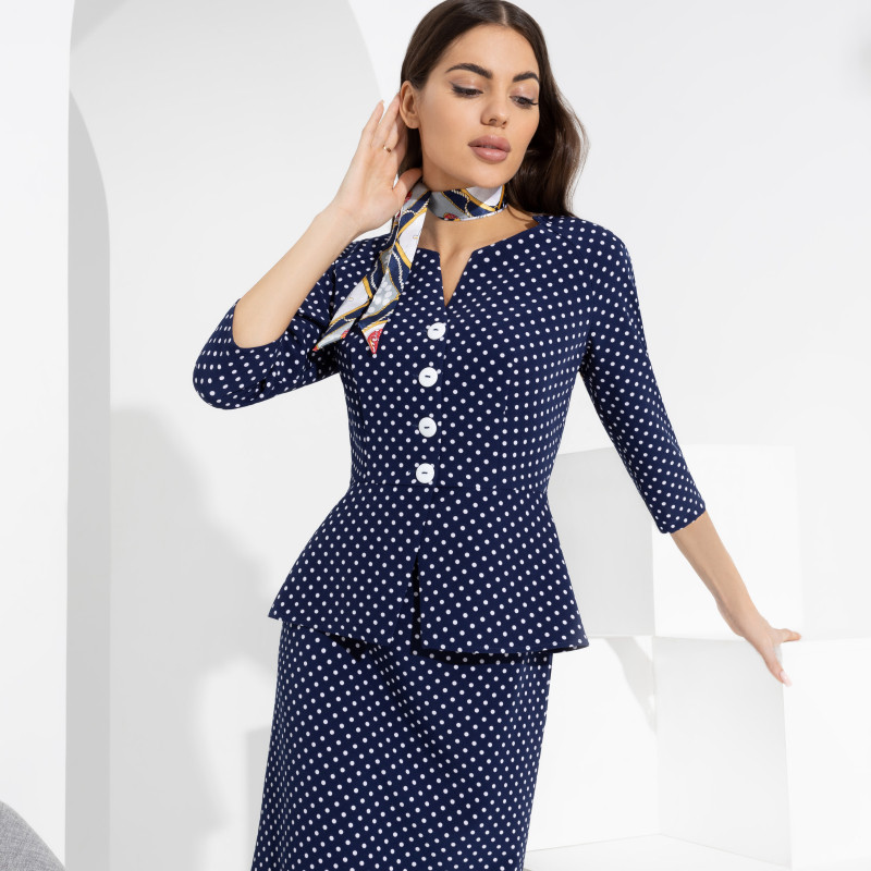 Классный пошив - на мою фигуру сел хорошо, очень удачная баска, скрывает лишнее))) Ткань не мнётся и не требует усиленного глажения. Удобный для офисной работы рукав, ну и вообще нарядный. Юбка без подклада, но ткань такая, что не прилипает.