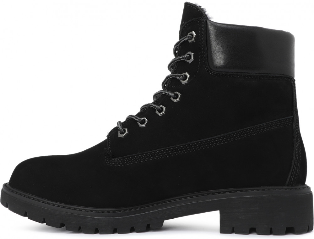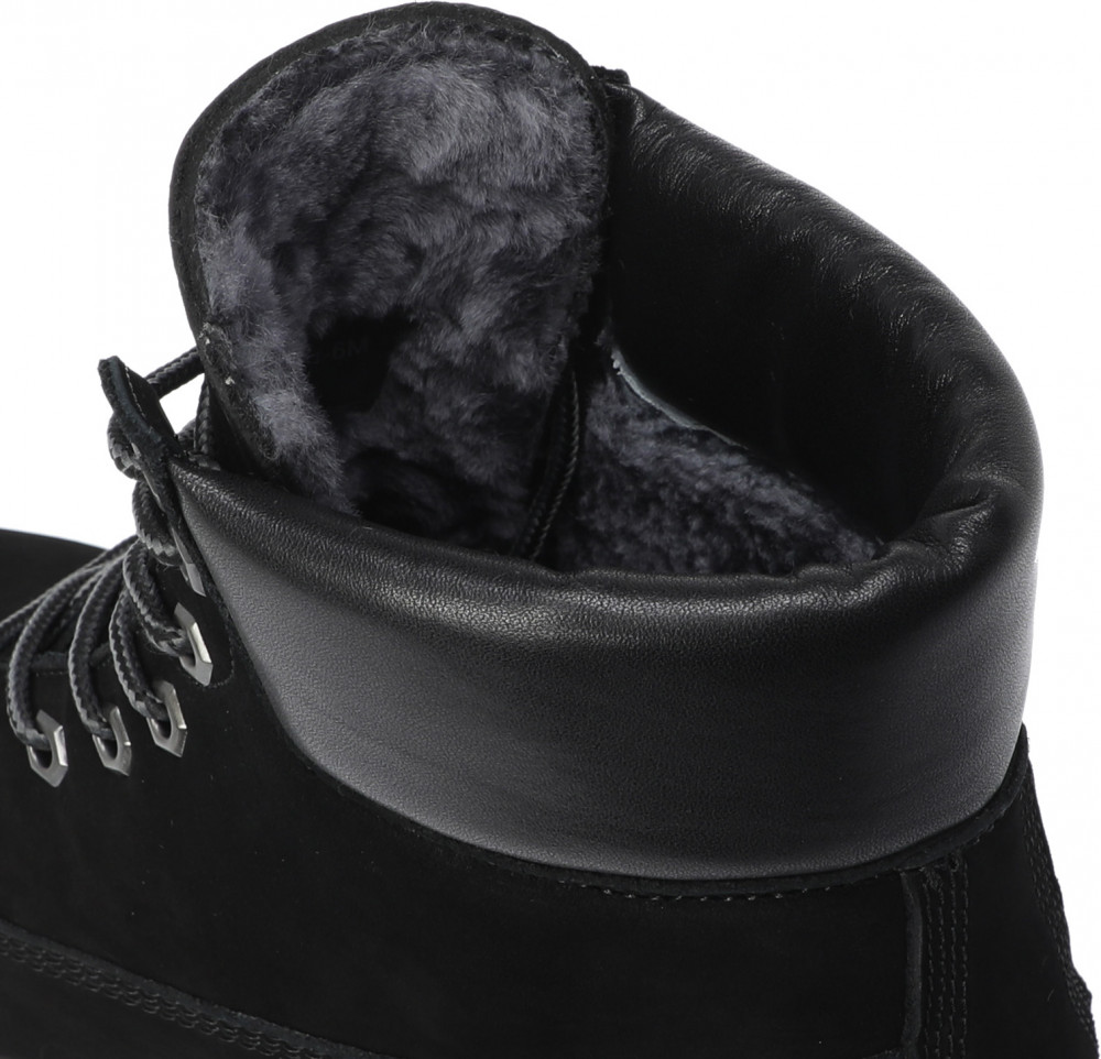 Мужские ботинки из натурального нубука из кожи теленка. Дополнительный материал — натуральная кожа. Застегиваются на шнуровку. Подошва, толщиной 2 см, из резины. Способ соединения подошвы — клеевой. Широкий каблук, высотой 4 см. Высота обуви — 14,5 см. Стелька и подкладка из натурального меха.