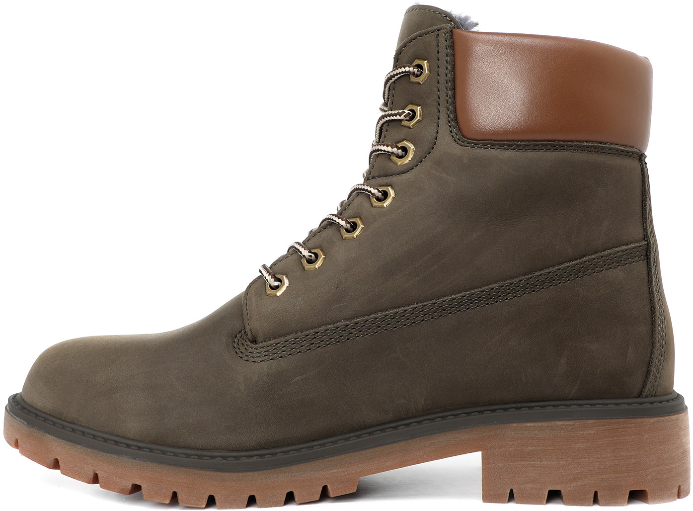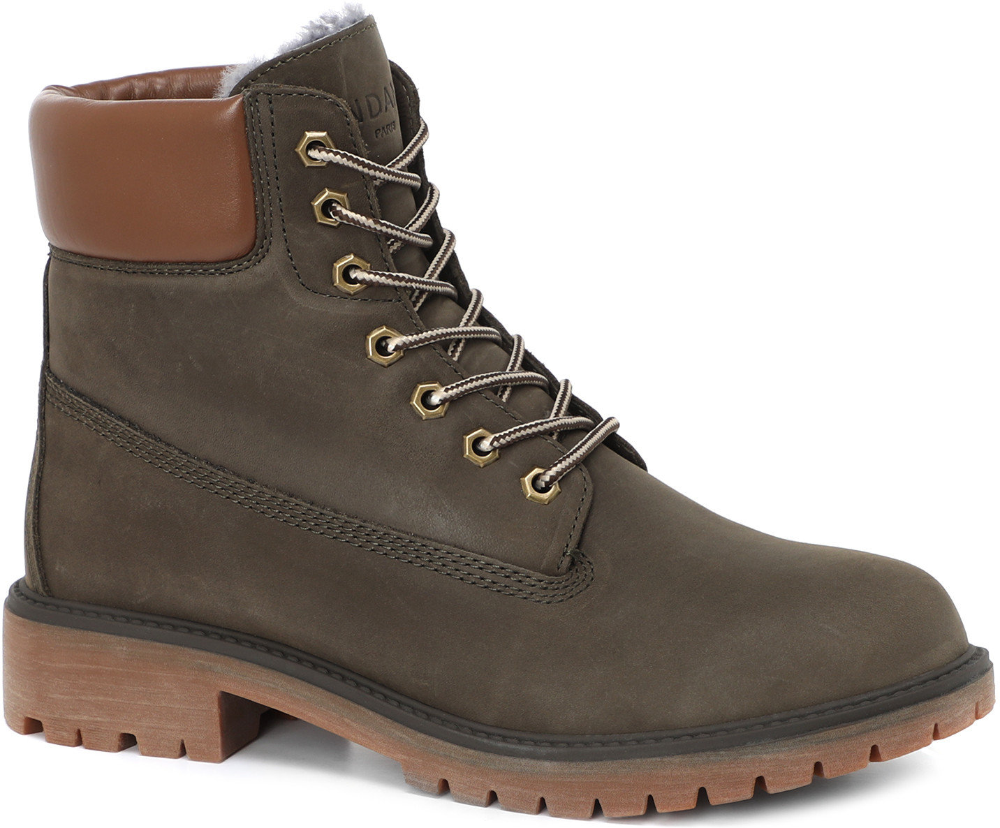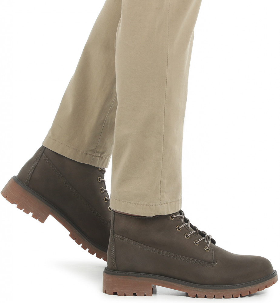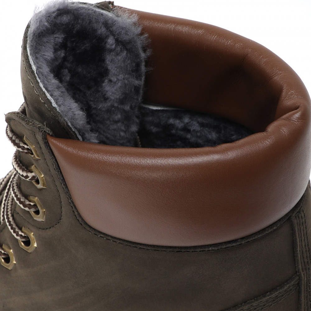 Мужские ботинки из натурального нубука из кожи теленка. Дополнительный материал — натуральная кожа. Застегиваются на шнуровку. Подошва, толщиной 2 см, из резины. Способ соединения подошвы — клеевой. Широкий каблук, высотой 4 см. Высота обуви — 14,5 см. Стелька и подкладка из натурального меха.