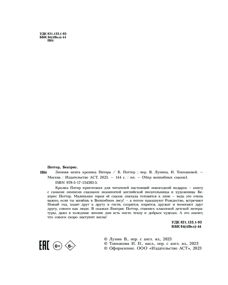 💳 Оплатить за товар можно при получении 🇰🇿 Есть бесплатная доставка по Казахстану от 1 дня 🎁 Копите бонусы с каждой покупки Серия: Мир волшебных сказок Кролик Питер приготовил для читателей настоящий новогодний подарок — книгу с самыми зимними сказками знаменитой английской писательницы и художницы Беатрис Поттер. |