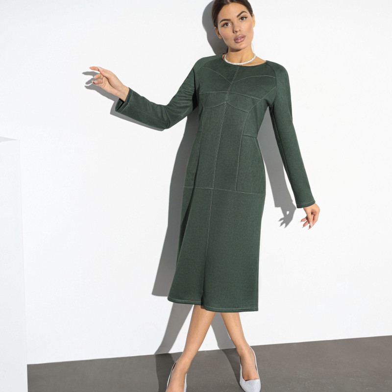 Понравилось платье, мой размер 50, подошёл идеально, на рост 175, ог 102, об 108, село хорошо, не обтягивает, талия на месте, длина ниже колена примерно на 5 см. Смотрится хорошо, в офис идеально, цвет зелёный, глубокий, понравился.