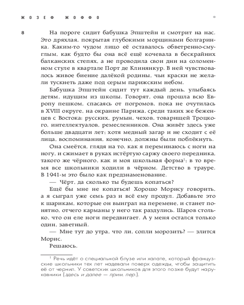 Жозеф Жоффо написал автобиографический роман о Франции 1941 года еще в прошлом столетии. Книга разошлась по миру миллионными тиражами. Автор откровенно рассказал, с чем пришлось столкнуться маленькому десятилетнему еврею в оккупированной нацистами стране. Эта правдивая история предлагает душераздирающий, но вдохновляющий взгляд на прерванное детство. |