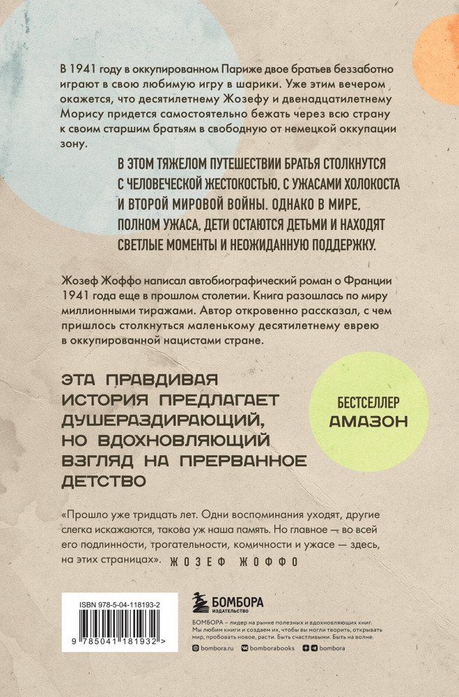 В данный момент этот товар отсутствует в продаже. Возможно, у нас найдется аналогичный или похожий товар здесь. Серия: Сила духа. Книги о преодолении себя В 1941 году в оккупированном Париже двое братьев беззаботно играют в свою любимую игру в шарики. Уже этим вечером окажется, что десятилетнему Жозефу и двенадцатилетнему Морису придётся самостоятельно бежать через всю страну к своим старшим братьям в свободную от немецкой оккупации зону.