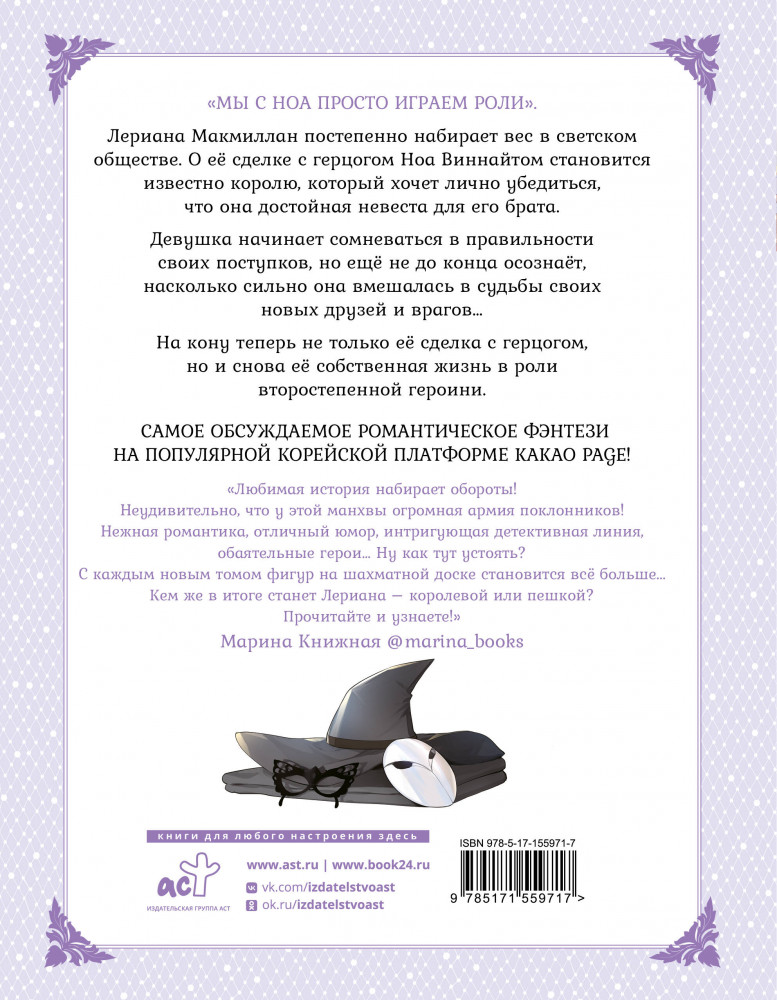 💳 Оплатить за товар можно при получении 🇰🇿 Есть бесплатная доставка по Казахстану от 1 дня 🎁 Копите бонусы с каждой покупки Серия: Вебтун. Лериана, невеста герцога по контракту Лериана Макмиллан постепенно набирает вес в светском обществе. О её сделке с герцогом Ноа Виннайтом становится известно королю, который хочет лично убедиться, что она достойная невеста для его брата. |