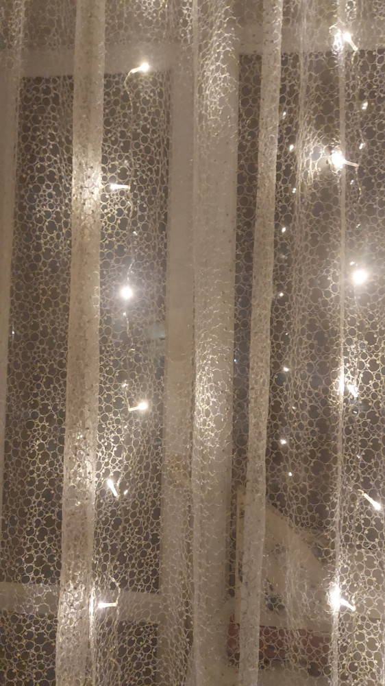 Супер гирлянда, завеса на тюль. Давно мечтала такую найти. Благодаря отзывам сориентировалась. И такая приемлемая цена. Настроение новогоднее и очаровательное было благодаря такой подсветке и отражению в стекле. Дочь теперь круглый год хочет включать такую подсветку и просит в другие комнаты приобрести