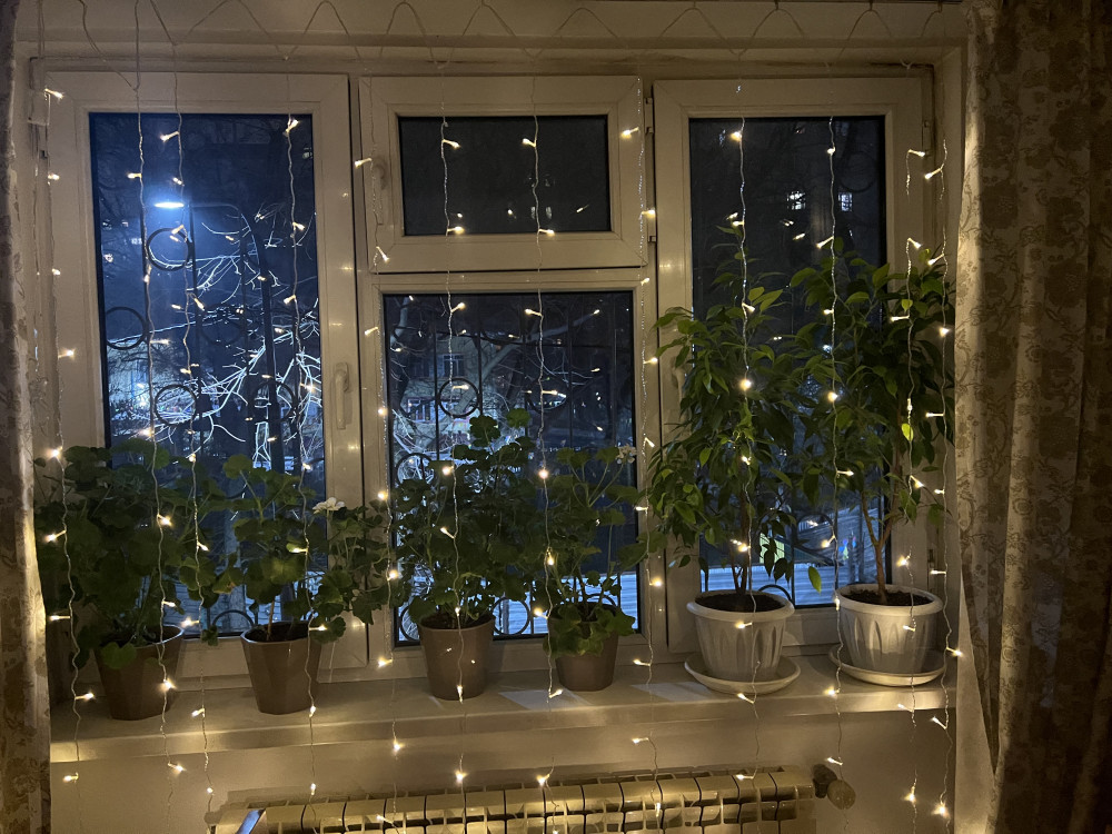 Украсила окно, отличная гирлянда, разные режимы свечения..теплый белый, создает уютную обстановку.