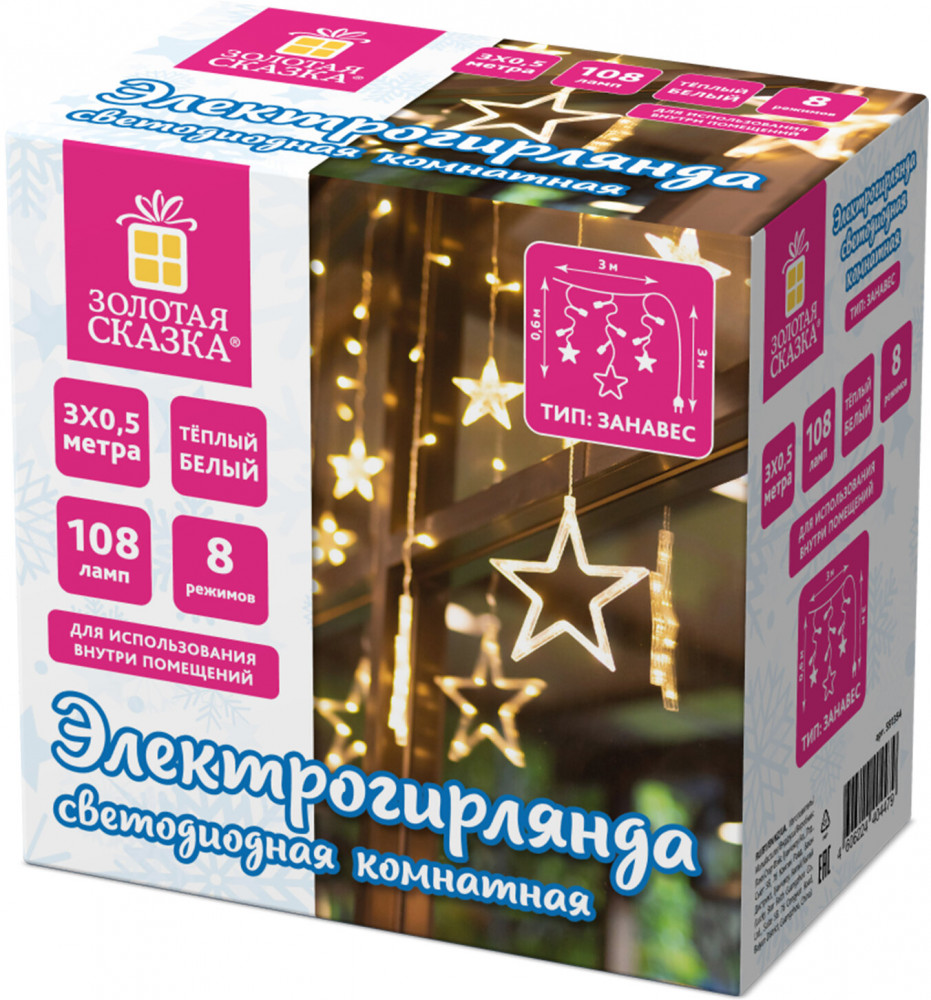 Золотая сказка Электрогирлянда-занавес комнатная «Звезды»