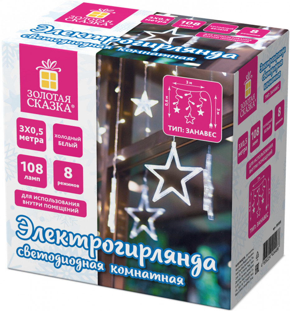 Золотая сказка Электрогирлянда-занавес комнатная «Звезды»