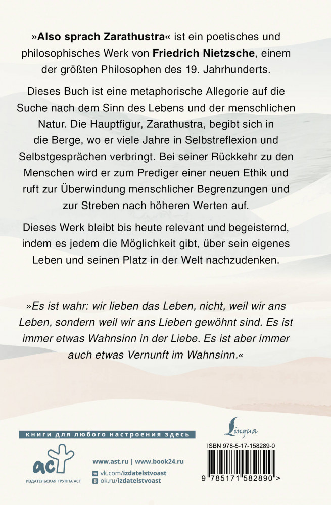 Also sprach ZarathustraВ данный момент этот товар отсутствует в продаже. Возможно, у нас найдется аналогичный или похожий товар здесь. Серия: Exklusive Klassik Издание на немецком языке. |