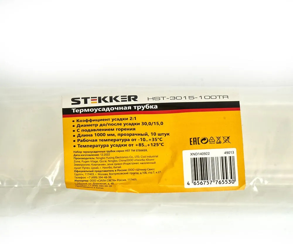 Термоусадочная трубка Stekker изготовлена из специального термоусаживаемого материала из числа термополимеров, способного изменять размеры под влиянием повышенной температуры (нагретым воздухом, открытым пламенем и др. способами). Характеризуется более высоким поперечным коэффициентом сжатия по отношению к продольному.