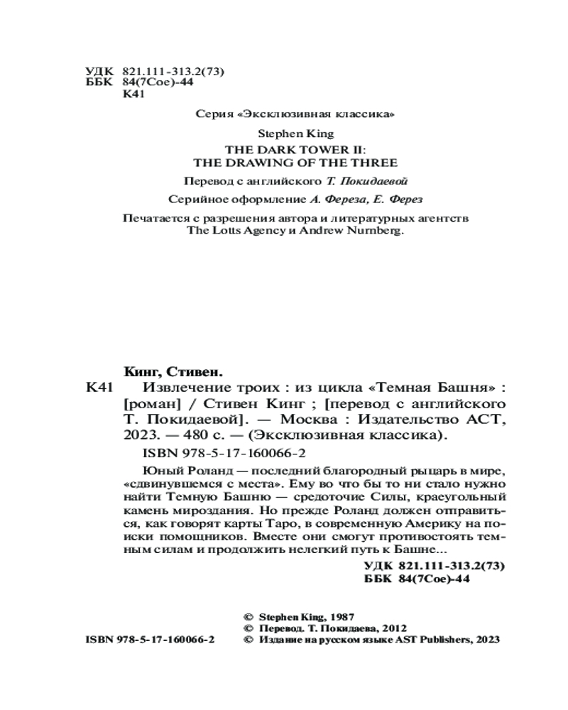 💳 Оплатить за товар можно при получении 🇰🇿 Есть бесплатная доставка по Казахстану от 1 дня 🎁 Копите бонусы с каждой покупки Серия: Эксклюзивная классика Цикл «Темная Башня» — это opus magnum — лучшая работа — Стивена Кинга. История последнего стрелка Роланда Дискейна и его друзей. |