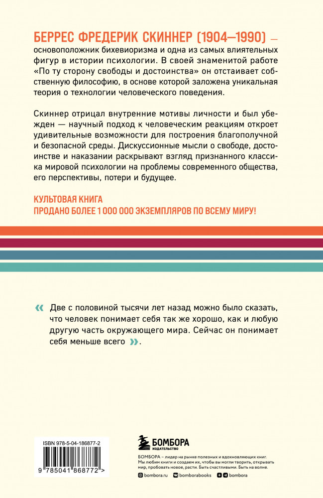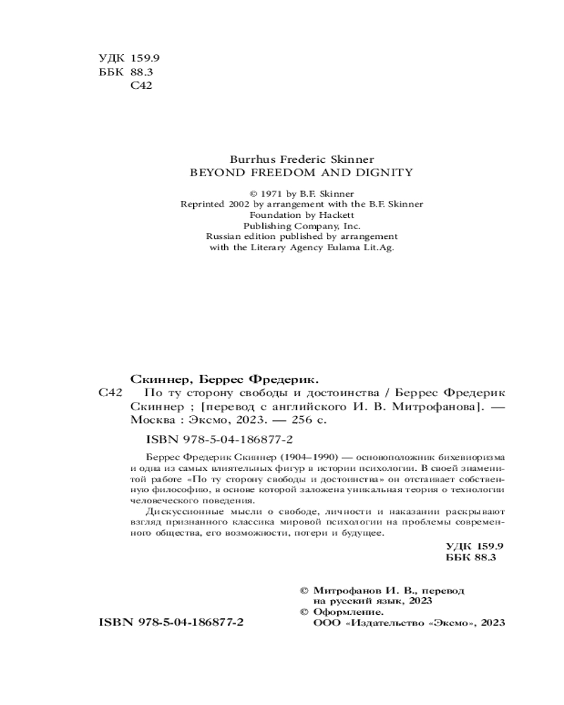 💳 Оплатить за товар можно при получении 🇰🇿 Есть бесплатная доставка по Казахстану 🎁 Копите бонусы с каждой покупки Серия: Легенды психологии. Книги Б. Ф. Скиннера Беррес Фредерик Скиннер (1904-1990) — основоположник бихевиоризма и одна из самых влиятельных фигур в истории психологии. В своей знаменитой работе «По ту сторону свободы и достоинства» он отстаивает собственную философию, в основе которой заложена уникальная теория о технологии человеческого поведения. |