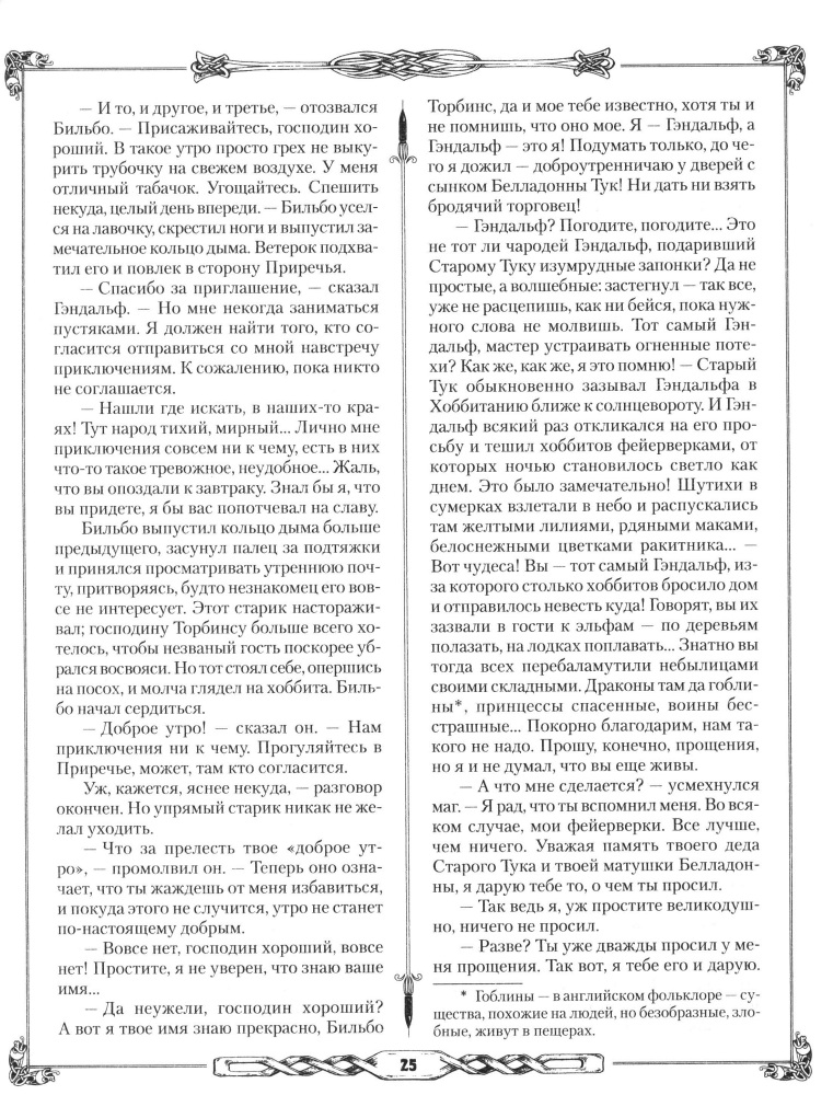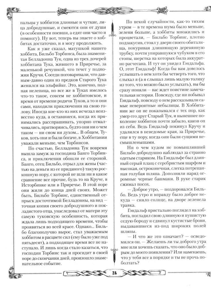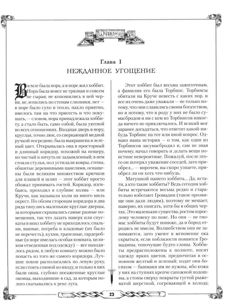 Не очень довольна этим вариантом перевода. Бильбо Бэггинс в этом варианте стал Торбинсом и еще много где идет отклонение от общепринятых названий и имен. Но в целом, если говорить о качестве книги то все волшебно, качественная бумага, хороший шрифт и живописные иллюстрации.