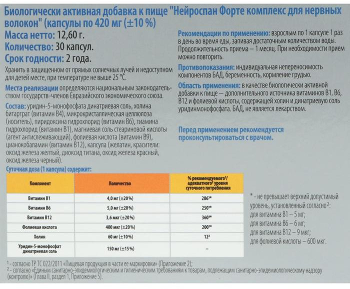 Витамир Капсулы «Нейроспан форте»В данный момент этот товар отсутствует в продаже. Возможно, у нас найдется аналогичный или похожий товар здесь. Нейроспан Форте комплекс — расширенная формула «Нейроспан комплекс для нервных волокон», так как в его состав добавлены холин, витамины В1 и В6, оказывающие положительное влияние на метаболизм нервных клеток и формирование связей между ними, что ведет к ускоренному восстановлению и нормализации работы центральной нервной системы. |