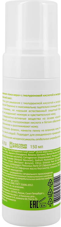 Levrana Пенка для умывания с гиалуроновой кислотой и экстрактом морских водорослей «Алоэ вера»-20% +67 не сушит приятная пенка смывает макияж приятный аромат лёгкая текстура
