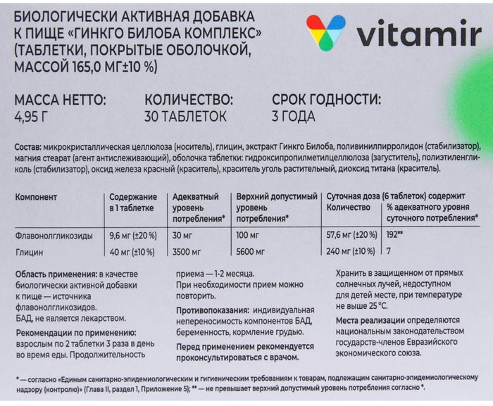 Витамир Таблетки «Гинкго Билоба комплекс»-25%