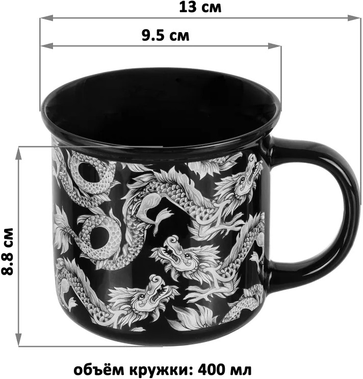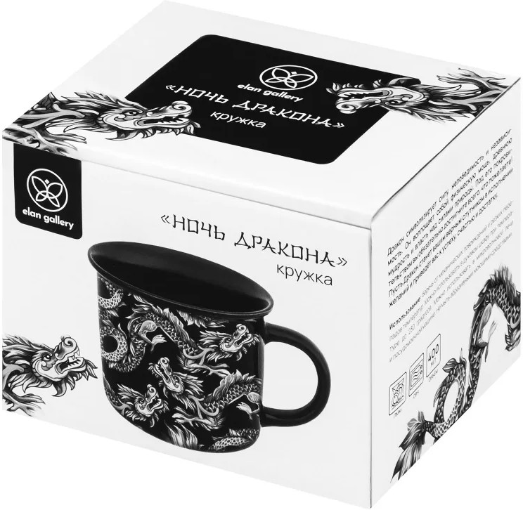Elan Gallery Кружка «Ночь дракона»В данный момент этот товар отсутствует в продаже. Возможно, у нас найдется аналогичный или похожий товар здесь. Кружка «Ночь дракона» выполнена из высококачественного фарфора с изображением Дракона - символа года 2024! Полностью чёрная кружка декорирована белыми рисунками драконов по всему периметру. Дракон символизирует непобедимость и независимость. Под его покровительством вы обязательно достигнете всего, что пожелаете! Такая кружка поможет провести множество приятных завтраков с капучино или латте, а также уютных чайных вечеров. Фарфоровые кружки отличаются от керамических повышенной плотностью. Они не впитывают цвет кофе, чая, глинтвейна, других горячих напитков. Кружку можно использовать в духовом шкафу при температуре до 230 градусов, в СВЧ и ПММ. Поставляется в подарочной картонной упаковке с дизайном символа года. Красивая кружка с изображением дракона станет настоящим украшением кухни у вас дома или приятным подарком к Новому году! Это отличный сувенир для родных, друзей, коллег мужчин, который никого не оставит равнодушным. |