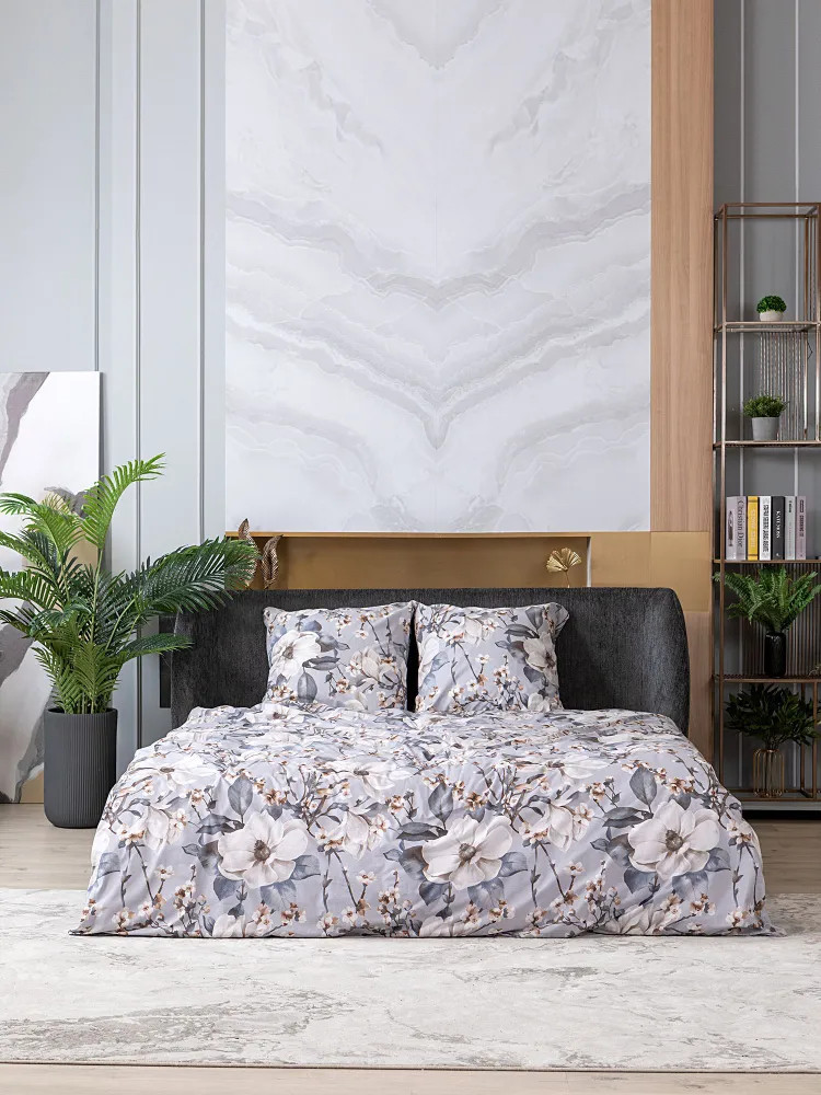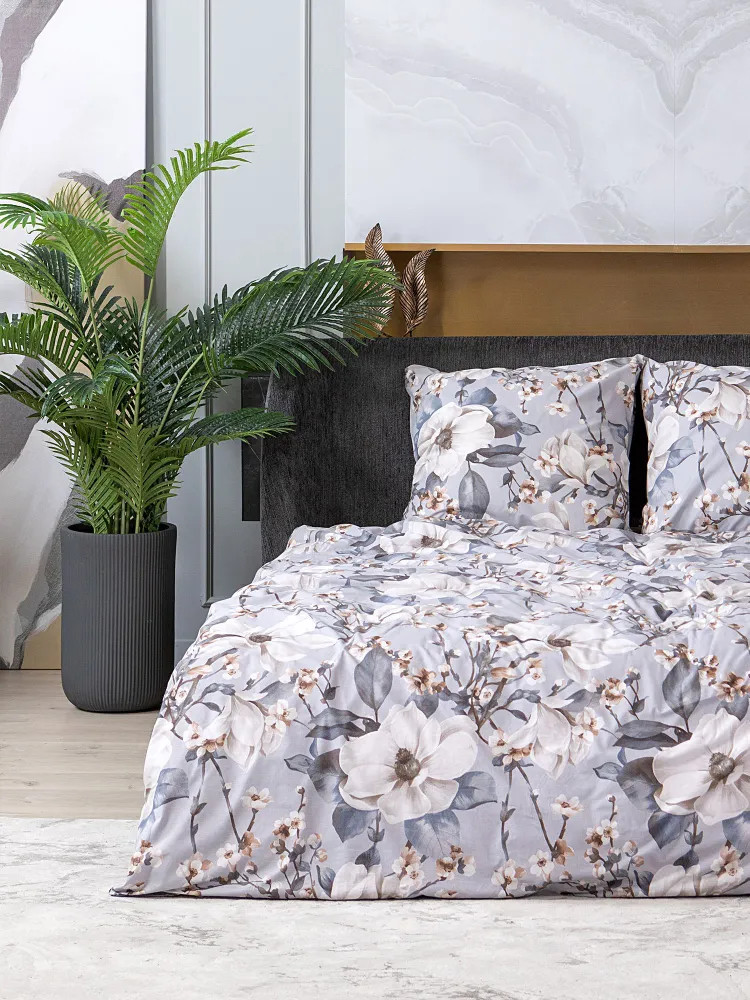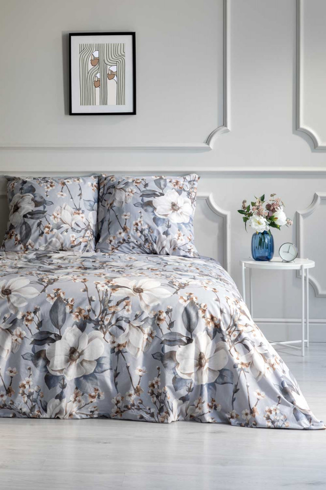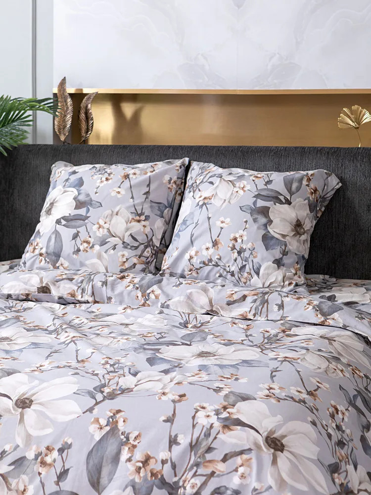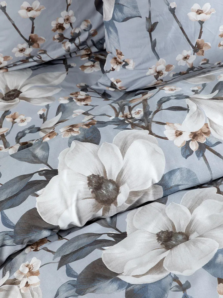 Постельное белье Brigitte вдохновлено весной, нежным и трогательным процессом пробуждения природы. На серо-голубом фоне раскинулись ветки с распускающимися цветами, настраивающие на романтический лад! Комплект выполнен из ткани перкаль. Это ткань полотняного переплетения из 100% хлопка. Материал отличается гигроскопичностью, мягкостью, легкостью и простотой в уходе.