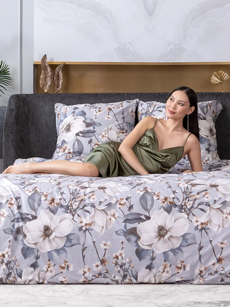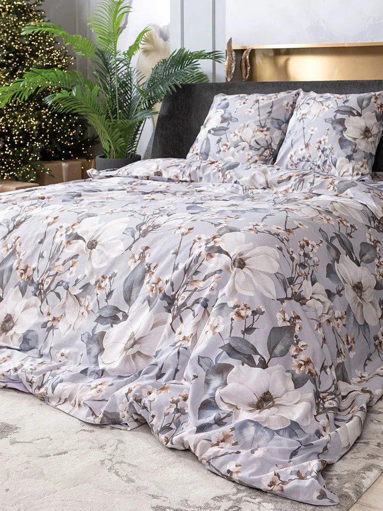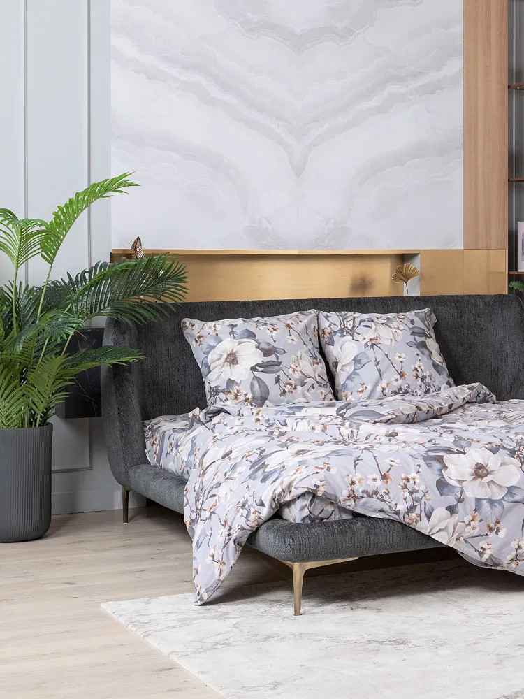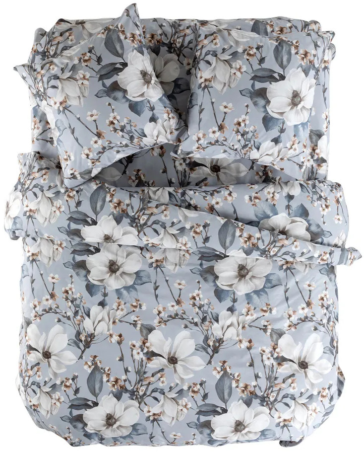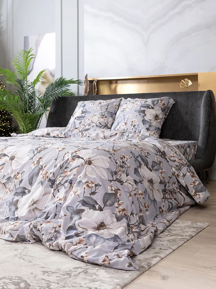 Постельное белье Brigitte вдохновлено весной, нежным и трогательным процессом пробуждения природы. На серо-голубом фоне раскинулись ветки с распускающимися цветами, настраивающие на романтический лад! Комплект выполнен из ткани перкаль. Это ткань полотняного переплетения из 100% хлопка. Материал отличается гигроскопичностью, мягкостью, легкостью и простотой в уходе.