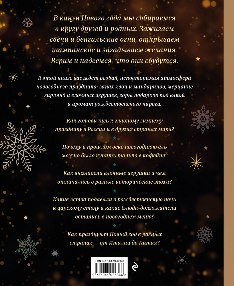 Как готовились к главному зимнему празднику в России и других странах мира? Почему в прошлом веке новогоднюю ель можно было купить только в кофейне? Как выглядели елочные игрушки и чем отличались в разные исторические эпохи? Какие яства подавали в рождественскую ночь к царскому столу и какие блюда-долгожители остались в новогоднем меню? Как празднуют Новый год в разных странах — от Италии до Китая? |