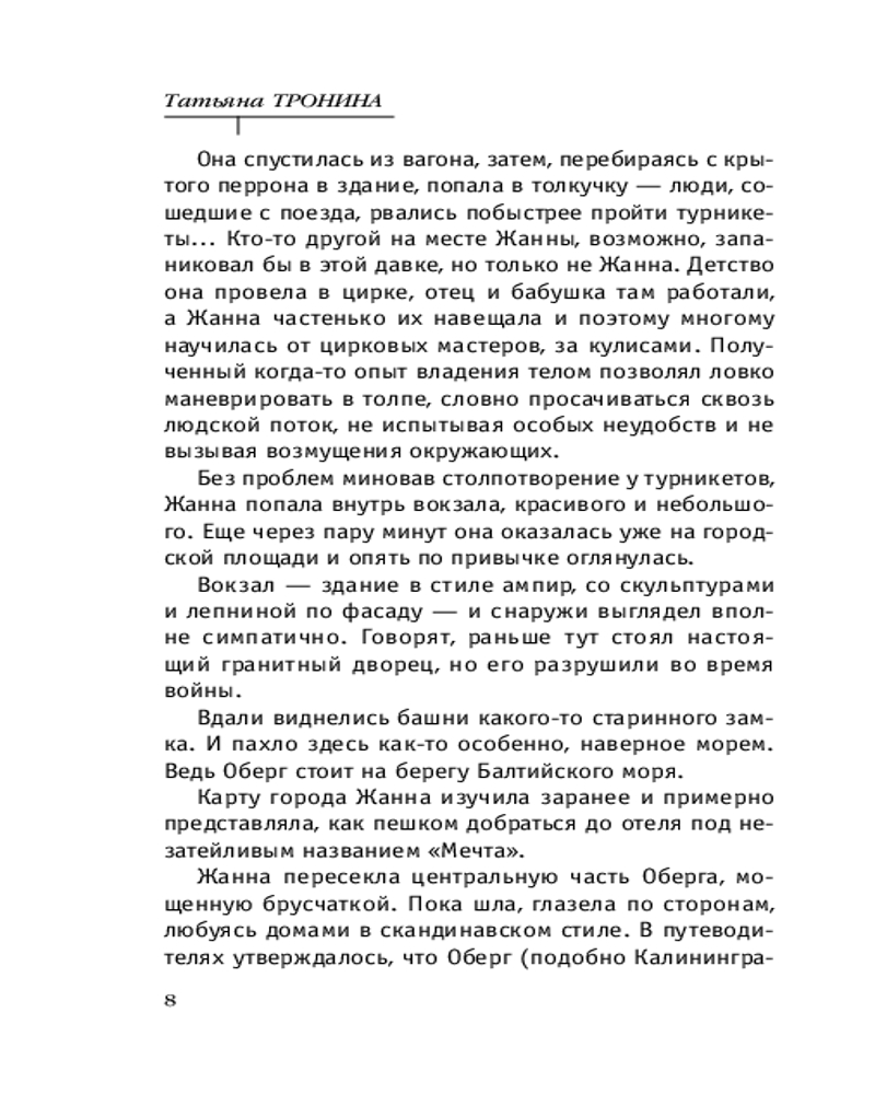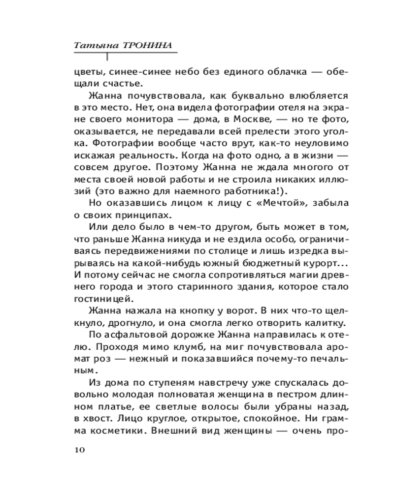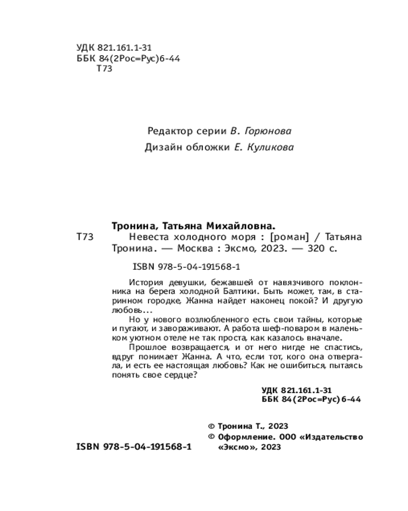 💳 Оплатить за товар можно при получении 🇰🇿 Есть бесплатная доставка по Казахстану от 1 дня 🎁 Копите бонусы с каждой покупки Серия: Нити любви. Романы Т. Трониной (обложка) Жанна сбежала из столицы на берега холодной Балтики. Теперь она шеф-повар в ресторанчике при маленьком уютном отеле. Принцесса она или все-таки Золушка? Но в древнем городе, среди сохранившихся средневековых зданий, так легко почувствовать себя принцессой... Только как теперь понять: кто он, твой принц? Тем более если внимания девушки добиваются сразу двое мужчин. Как Жанне не ошибиться с выбором? Быть может, и не надо выбирать, холодные воды Балтики сами вынесут на берег подсказку? Или в этих волнах таится опасность, способная утянуть на самое дно? |